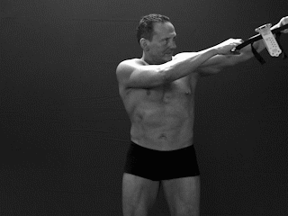 Es geht hier darum, mit 70% Einsatz seiner Maximalkraft einen konstanten Dauerzug aufzubauen. So können Sie diesen Krafteinsatz durch die Bewegung in jeden Ausdehnungszustand des Muskels im Fokus bringen. Nur so wird jede Muskelfaser erreicht und ein gezielter Aufbaureiz gesetzt.